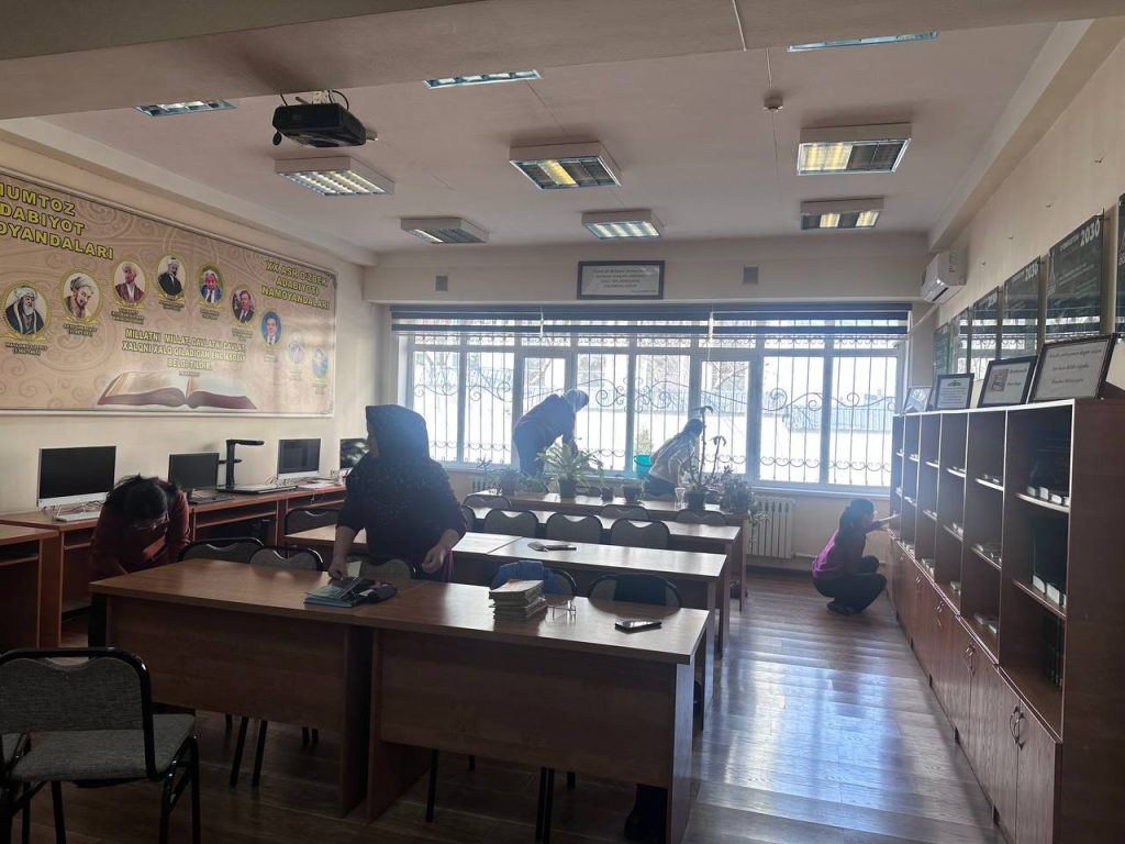 Kutubxona xodimlarining hasharda faol ishtiroki,